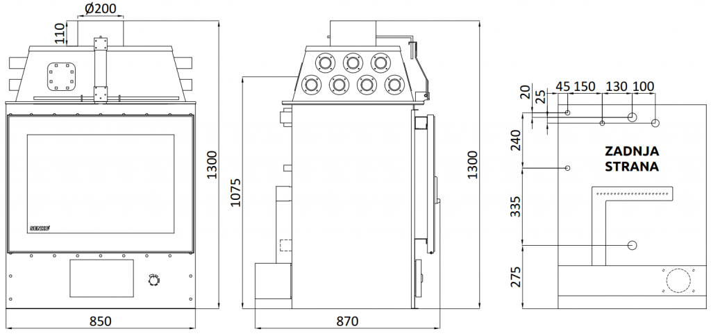 Priključak dimnjaka: Ø 200 mm